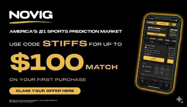 With Novig Promo Code STIFFS, new users get a 100% match up to $100 on their first purchase, doubling your bankroll before you even make your first pick.