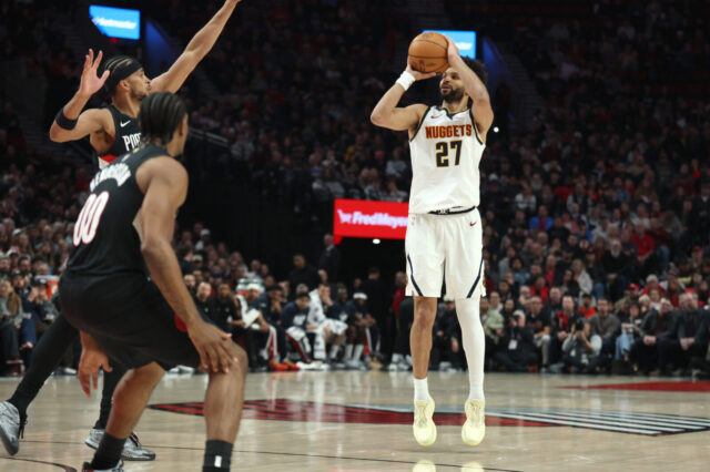 Injury report: Peyton Watson – questionable (hamstring), DaRon Holmes II – out (G-League), Curtis Jones – out (G-League), KJ Simpson – out (G-League); Jerami Grant – questionable (foot), Vit Krejci – questionable (calf), Damian Lillard – out (achilles), Shaedon Sharpe – out (fibula), Yang Hensen – out (G-League), Chris Youngblood – out (G-League), Caleb Love – out (G-League).