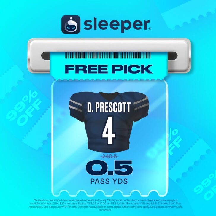 🔥 Don’t miss your chance to cash in on Sleeper’s best new-user promo of the season. Use Sleeper promo code STIFFS today to claim your Dak Prescott free pick + $20 no-deposit bonus and add a little extra excitement to Sunday’s Cowboys vs. Jets showdown.